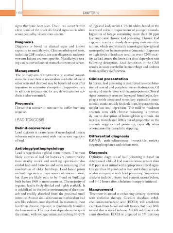 oil or activated charcoal may be beneficial soon after In horses, lead poisoning is manifested as a combina-