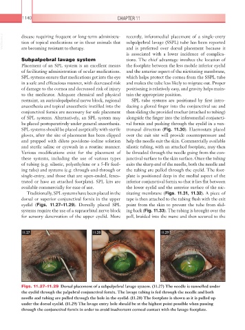 eyelid (Figs. 11.27–11.29). Dorsally placed SPL point from the skin to prevent the tube from slid-