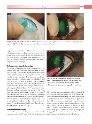 angle (in order to help decrease globe leakage), and Fig. 11.38 Subconjunctival administration of a