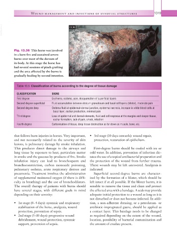Table 13.5 Classification of burns according to the degree of tissue damage