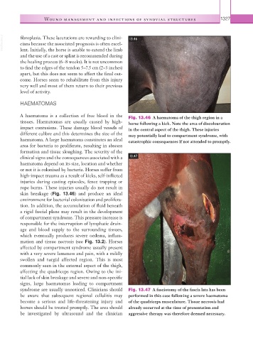 A haematoma is a collection of free blood in the Fig. 13.46 A haematoma of the thigh region in a