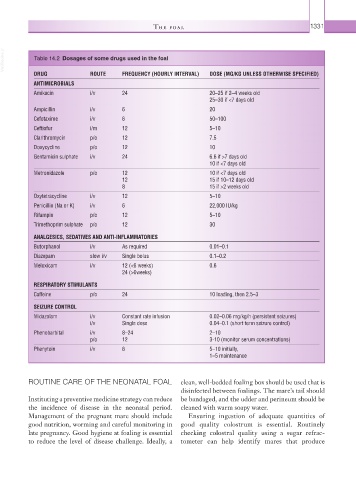 VetBooks.ir Table 14.2 Dosages of some drugs used in the foal