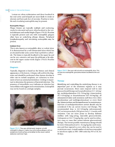 Typically, diagnosis is based on the history and clinical Figure 170.13 One‐year‐old cat with an eosinophilic ulcer. This