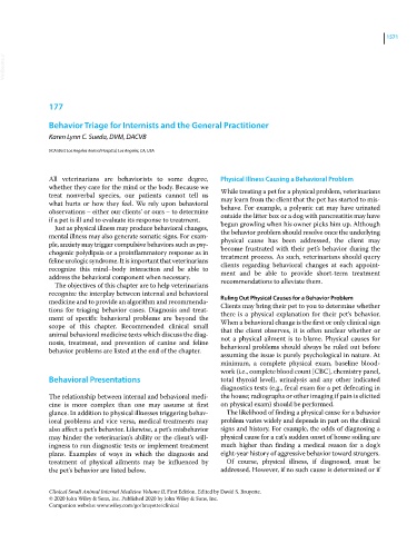 animal behavioral medicine texts which discuss the diag- not a physical ailment is to blame. Physical causes for