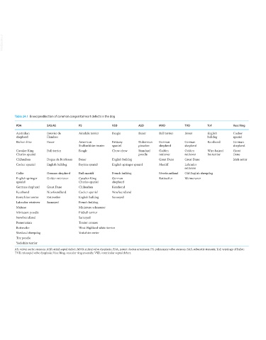 Table 24.1 Breed predilection of common congenital heart defects in the dog