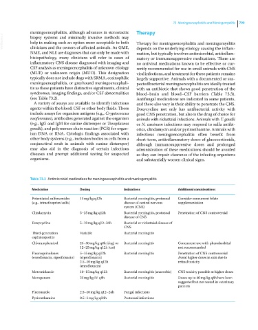Table 73.3 Antimicrobial medications for meningoencephalitis and meningomyelitis