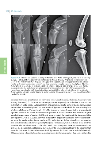 femoropatellar joint; (o) patellar ligament; (p) infrapatellar fat pad; and (q) cranial and caudal horn of the