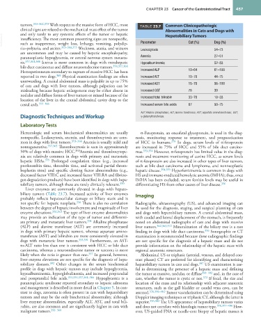 50% of dogs with massive HCC. 363 Anemia and thrombocytope- mas. 393,394 However, α-fetoprotein has limited value in the diag-