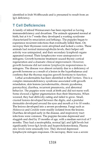 lymphocyte mitogen responses. On necropsy, there was a severe