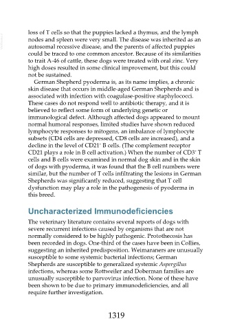 loss of T cells so that the puppies lacked a thymus, and the lymph
