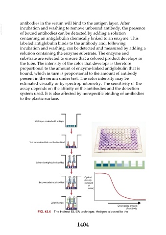 FIG. 42.6 The indirect ELISA technique. Antigen is bound to the
