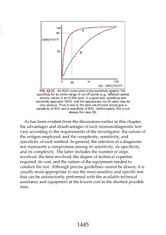 FIG. 42.33 An ROC curve plots a test sensitivity against 100-