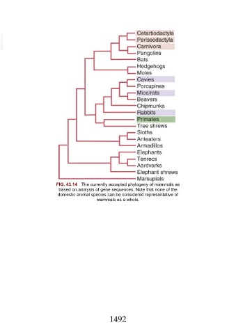 VetBooks.ir FIG. 43.14 The currently accepted phylogeny of mammals as based on analysis of gene sequences. Note that none of the domestic animal species can be considered representative of mammals as a whole. 1492