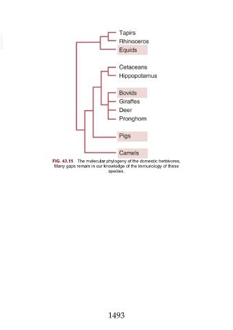 VetBooks.ir FIG. 43.15 The molecular phylogeny of the domestic herbivores. Many gaps remain in our knowledge of the immunology of these species. 1493