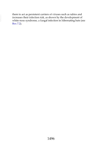 them to act as persistent carriers of viruses such as rabies and VetBooks.ir increases their infection risk, as shown by the development of white-nose syndrome, a fungal infection in hibernating bats (see Box 7.2). 1496