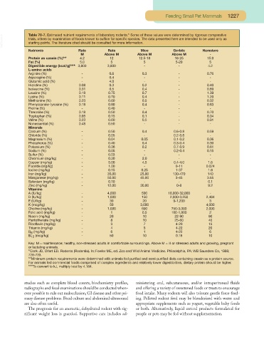 VetBooks.ir Table 70-7. Estimated nutrient requirements of laboratory rodents.* Some of these values were determined by rigorous comparative