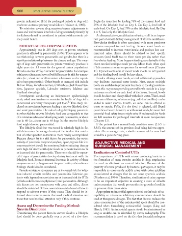 PATIENTS AT RISK FOR PANCREATITIS aciduria compared to meal feeding. Because moist foods are