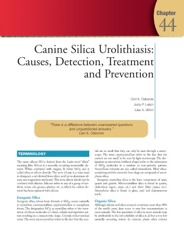 called silica or silicon dioxide. The term silicate is a noun used containing uroliths removed from dogs are composed of amor-