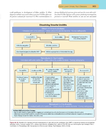 Figure 46-19. Algorithm for management and reassessment of cats with struvite urolithiasis. Key: MAP = magnesium ammonium phosphate