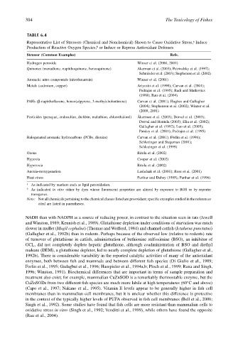 Representative List of Stressors (Chemical and Nonchemical) Shown to Cause Oxidative Stress, Induce