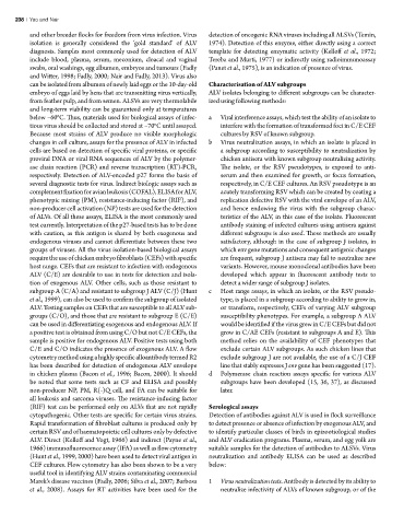 cytopathogenic. Other tests are specific for certain virus strains. Detection of antibodies against ALV is used in flock surveillance
