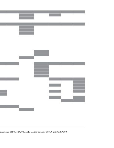 aviadenovirus B FAdV-A Homologues present and absent are represented in shaded and blank boxes, respectively.