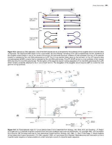 Figure 10.3 Adenovirus DNA replication. One of the DNA strands serves as template for the synthesis of the daughter strand while the other