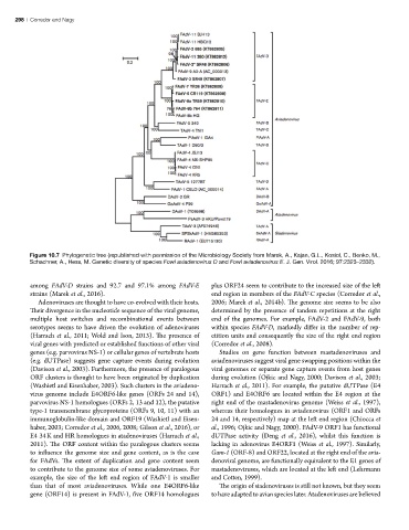 multiple host switches and recombinational events between end of the genomes. For example, FAdV-2 and FAdV-9, both