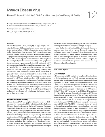 ens caused by a herpesvirus. MD was first described by Dr Joseph turkeys (Table 12.1). The MDV-1 pathogenic strains vary greatly