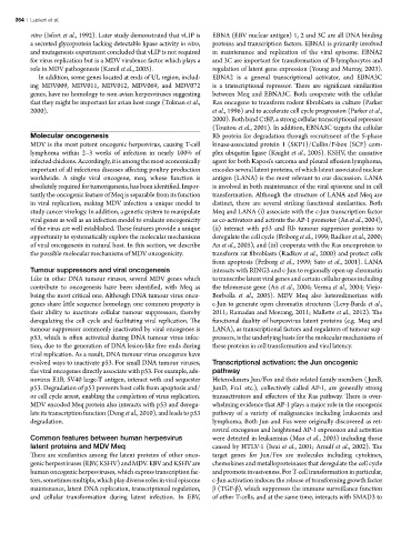 genic herpesviruses (EBV, KSHV) and MDV. EBV and KSHV are chemokines and metalloproteinases that deregulate the cell cycle