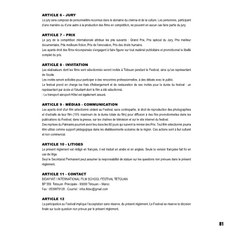 La participation au Festival implique l’acceptation sans réserve, du présent règlement. Le Festival se réserve la décision