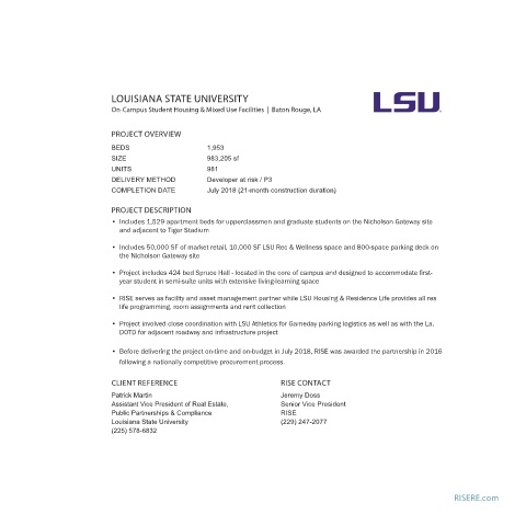 • RISE serves as facility and asset management partner while LSU Housing & Residence Life provides all res