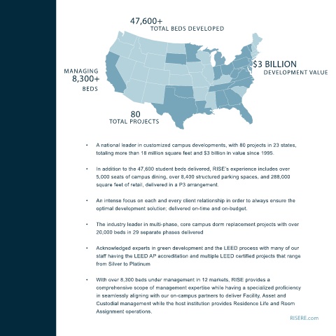 • In addition to the 47,600 student beds delivered, RISE’s experience includes over