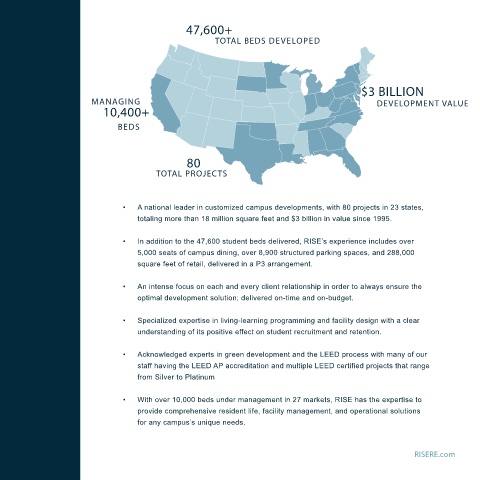 •   A national leader in customized campus developments, with 80 projects in 23 states,