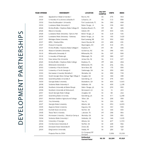 YEAR OPENED        UNIVERSITY          LOCATION           UNITS    BEDS