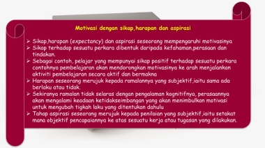 Sikap,harapan (expectancy) dan aspirasi seseorang mempengaruhi motivasinya