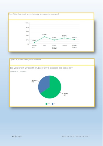 Figure 6: Does the university leverage technology to make your job tasks easier? Figure 7: Do you know where policies are located? 43 | P a ge S O U T H E R N U N IVE R S IT Y