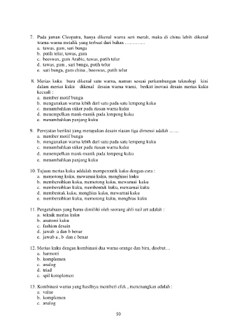 11. Pengetahuan yang harus dimiliki oleh seorang ahli nail art adalah :