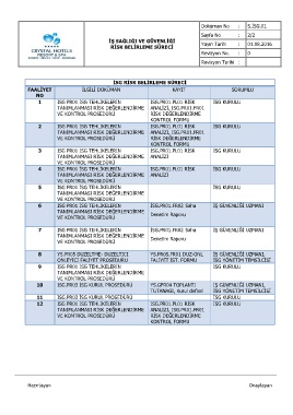 TANIMLANMASI RİSK DEĞERLENDİRME ANALİZİ, ISG.PR01.FR01