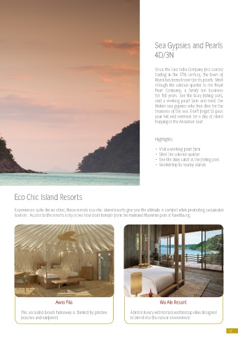 tourism. Access to the resorts is by a two hour boat transfer from the mainland Myanmar port of Kawthaung.