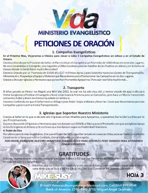 En el Próximo Mes, Viajaremos a México para Llevar a Cabo 2 Campañas Evangelís cas en Jalisco y en el Estado de