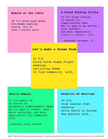 Note:Titlesofthesepresentedpersonalsweregeneratedforthemeansofthiszineandnotinthecodeitself