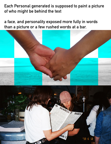 EachPersonalgeneratedissupposedtopaintapicture ofwhomightbebehindthetext aface,andpersonalityexposedmorefulyinwords thanapictureorafewrushedwordsatabar.