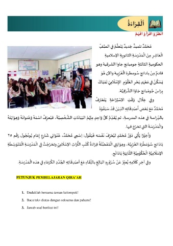 PETUNJUK PEMBELAJARAN QIRA’AH 1. Duduklah bersama teman kelompok! 2. Baca teks diatas dengan seksama dan pahami! 3. Jawab soal berikut ini!