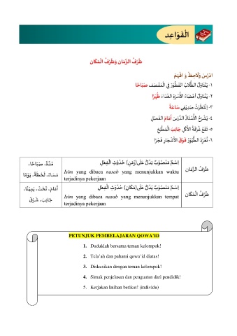 PETUNJUK PEMBELAJARAN QOWA’ID 1. Duduklah bersama teman kelompok! 2. Tela’ah dan pahami qowa’id diatas! 3. Diskusikan dengan teman kelompok! 4. Simak penjelasan dan penguatan dari pendidik! 5. Kerjakan latihan berikut! (individu)