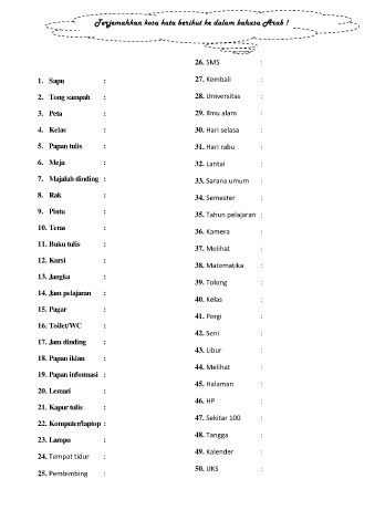 Terjemahkan kosa kata berikut ke dalam bahasa Arab !