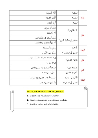 PETUNJUK PEMBELAJARAN QOWA’ID 1. Cermati dan pahami qowa’id diatas! 2. Simak penjelasan dan penguatan dari pendidik! 3. Kerjakan latihan berikut! (individu)