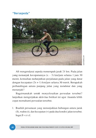 Ali mengendarai sepeda menempuh jarak 21 km. Pada jalan