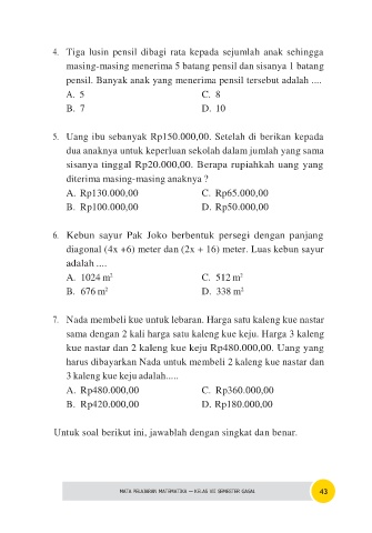 MATA PELAJARAN MATEMATIKA — KELAS VII SEMESTER GASAL 43