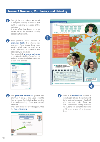 4 There is a fast finishers exercise in every lesson to keep stronger students challenged and engaged if they finish other exercises quickly. These are short, personalised writing exercises that students can complete alone and could keep as part of a language diary.
